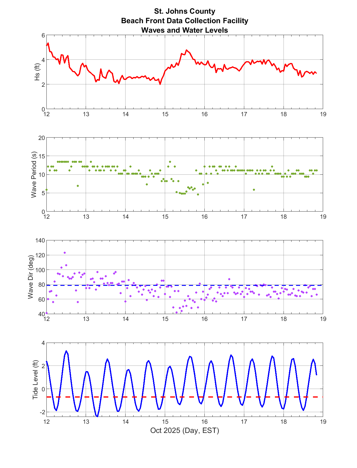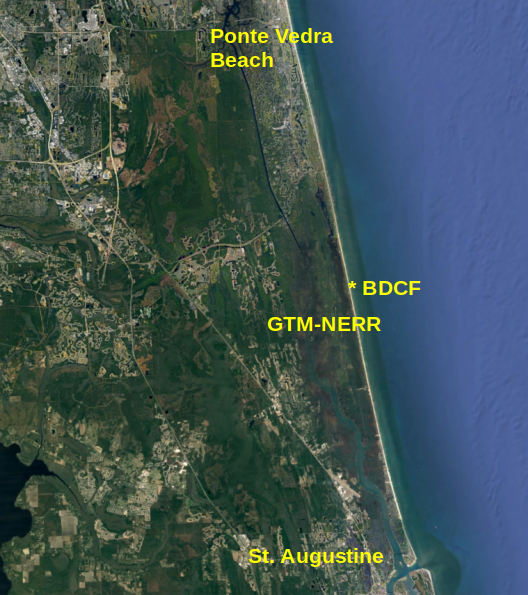 Welcome to the St. Johns County Beachfront Data Collection Facility (BDCF), located on a pristine section of Florida’s Atlantic shoreline in the Guana Tolomato Matanzas National Estuarine Research Reserve (GTM-NERR). The facility utilizes state-of-the-art instruments that constantly record the ever-changing waves, winds, ocean water levels, and currents, and reports the processed results on an hourly basis on this website.